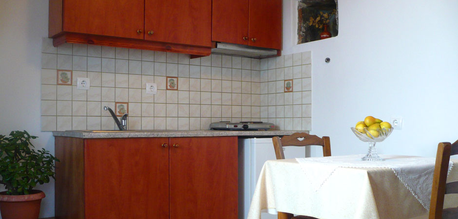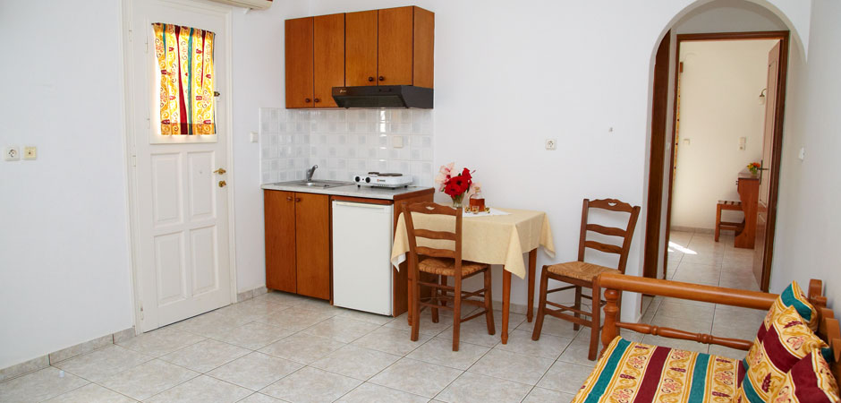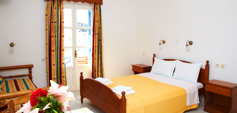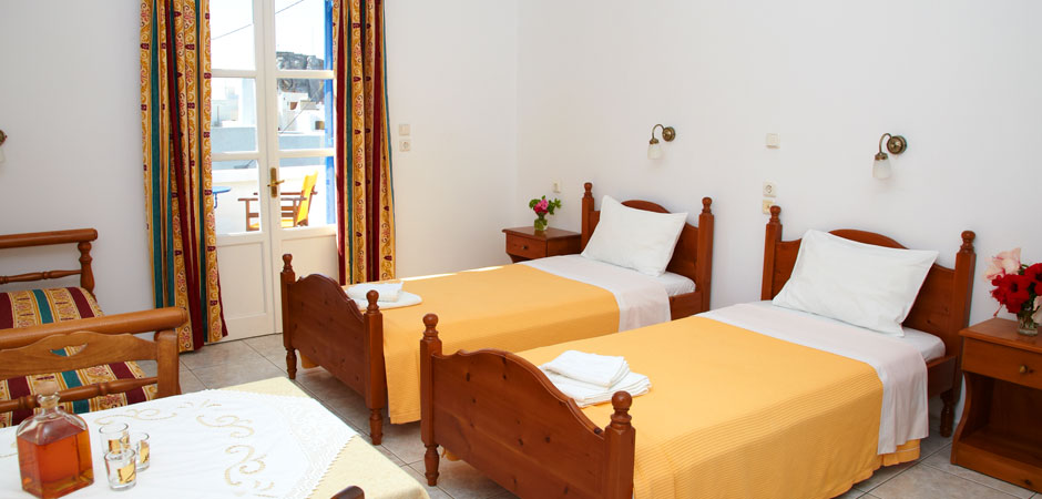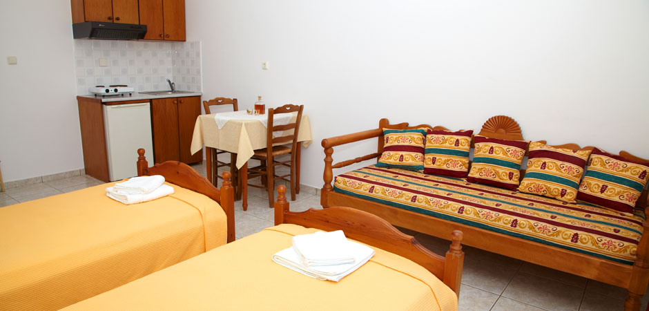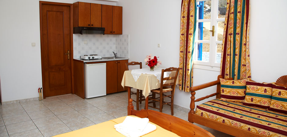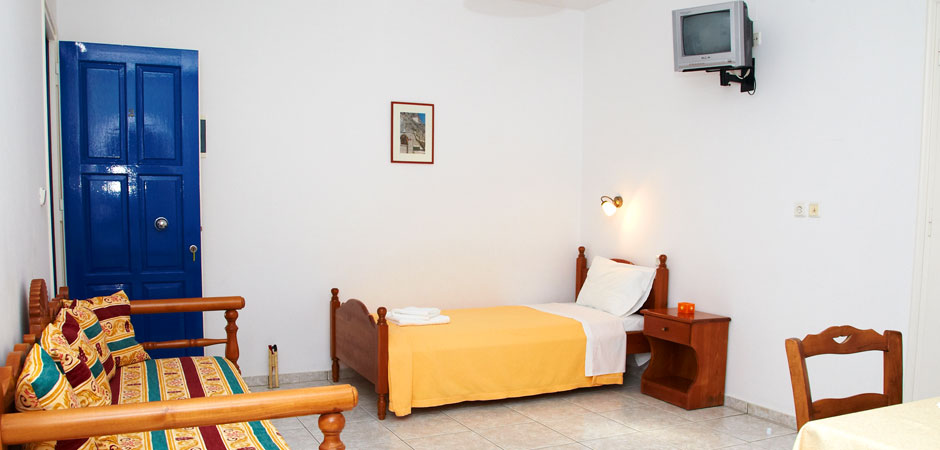 Our Studios are quiet and comfortable, and have a fully equipped kitchen, TV, A/C and verandas with view. The rooms of our Pension are comfortable and equipped with A/C, TV, refrigerator, and private balconies with view, while some of them also have kitchen.